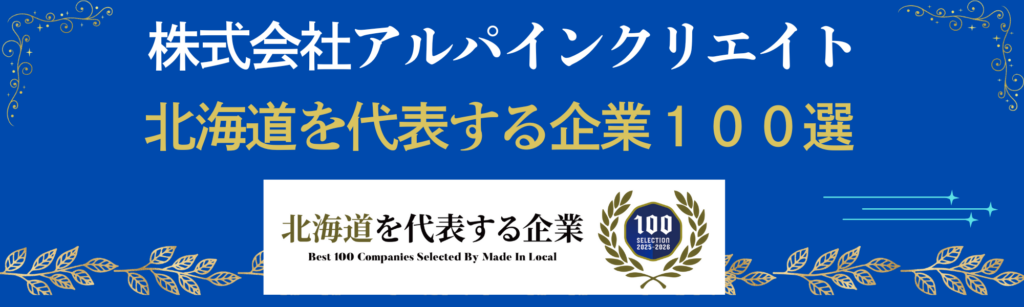 株式会社アルパインクリエイトは北海道を代表する企業に選出されました。雪国特有の雪害による人的・設備的被害を防止していくことを目標に掲げていることから「地域課題の解決に貢献する企業」として評価されたことは大変嬉しくもあり、選考に値する企業として精進していきたいと考えます。詳しくはURLよりご確認下さい。https://madeinlocal.jp/category/companies/hokkaido069